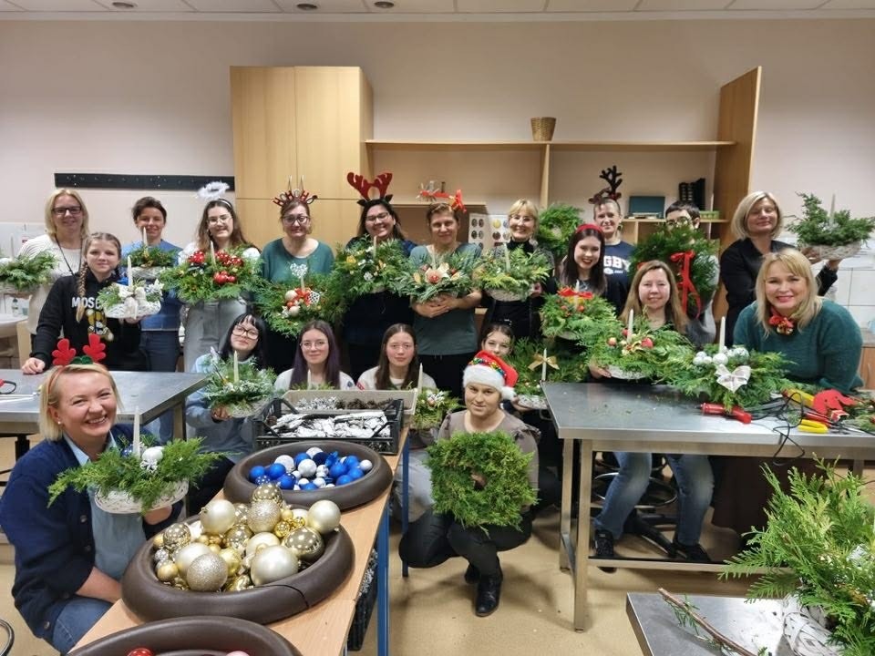 W dniu 5 grudnia odbyły się w naszej szkole pierwsze Warsztaty Integracyjno-Charytatywne, podczas których uczestnicy - Uczniowie, Rodzice oraz Nauczyciele wraz z Dyrekcją, wspólnie wykonywali świąteczne wieńce i stroiki.