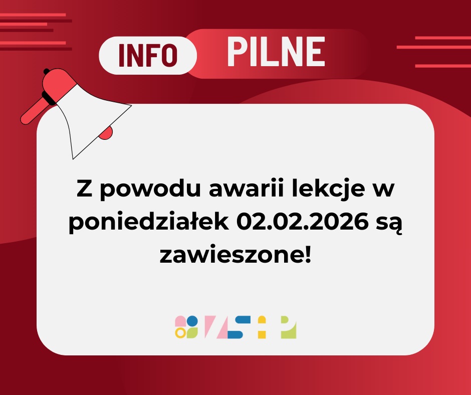 Z powodu awarii wody zajęcia w poniedziałek 2 lutego 2026 zostają zawieszone.